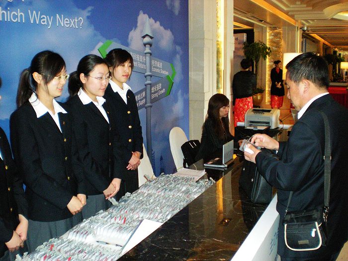 3 月 25 日 至 27 日,我校 TUC-FIU 合作学院十二名同学赴北京香格里拉饭店参加了 Horwath HTL (浩华管理顾问集团公司) 2009 年中国酒店开发与融资论坛并提供会议服务。本次会议为该论坛的第五届年会,由 Horwath HTL (浩华管理顾问集团公司)、 STR GLOBAL 以及中国旅游饭店业协会共同主办。 “ 中国酒店开发与融资论坛 ” 作为中国酒店业论坛的先驱,致力于探讨和洞察中国酒店业发展的最新动态和趋势。会议吸引了来自世界各地的几百位与会嘉宾,包括业主、开发商、酒店管理公司总部人员、业界专业人士、投资银行和金融机构、以及新闻媒体等。 会议期间, TUC-FIU 合作学院的同学们分别参与了前期文件准备、前台登记咨询服务、会议进程支持、问询台服务、嘉宾迎送礼仪等活动。同学们认真的服务态度和良好的专业素质推动了本次会议的顺利进行,受到了主办方和与会嘉宾的高度赞扬。通过本次会议服务,同学们对酒店行业的现状和未来趋势有了更深一步的了解,与酒店高级管理人员也取得了良好的沟通,为今后的酒店业专业课程的学习和实践打下了坚实基础。