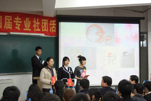 开幕式过程中用 VCR 的形式对上一年度专业社团所组织的活动和取得的成绩进行了回顾,展现了我校专业社团的风采。校团委书记王罡为社团联合会的会徽征集获奖同学颁奖。