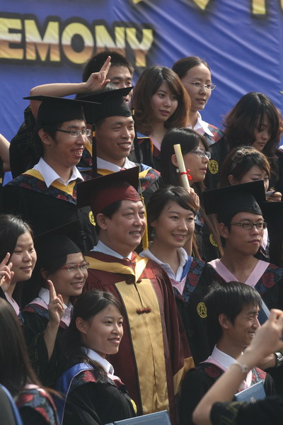 2937 名毕业生身着学位服参加毕业典礼,23 位导师代表为每名毕业生颁发毕业证书和学位证书,拨流苏,并和他们一一合影留念,祝贺他们完成学业,即将奔赴新的工作岗位。历时两个半小时的颁证仪式,始终沉浸在隆重、热烈、和谐的气氛中。毕业生兴奋的欢呼声和高高抛向天空的学位帽,寄托了莘莘学子内心成功的喜悦和对未来人生的无限向往。